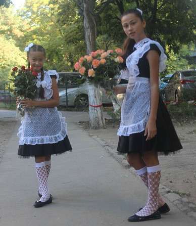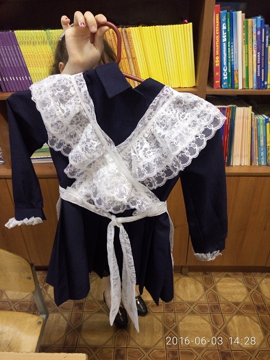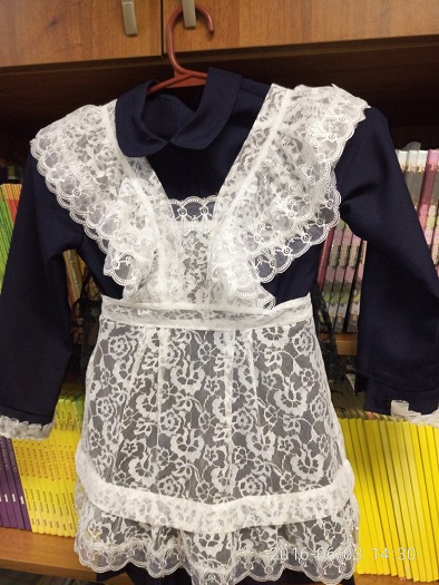 1. В тёплое время года тёмно - синее платье и белый или чёрный фартук