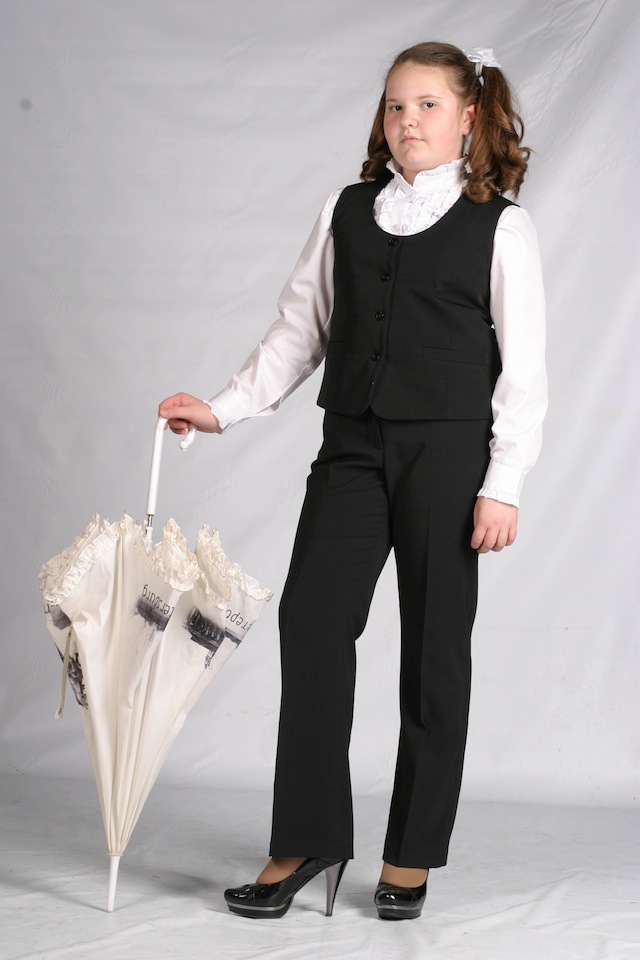 2. С наступлением холодов можно одевать брюки тёмно - синего цвета и свитер.